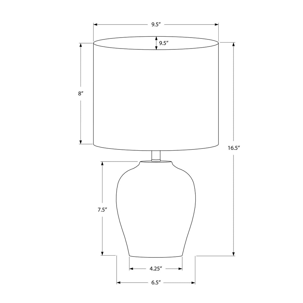 • Assembled dimensions: 9.5 in. L x 9.5 in. W x 16.5 in. H; base: 6.5 in. L x 6.5 in. W x 7.5 in. H; shade: 9.5 in. L x 9.5 in. W x 8 in. H