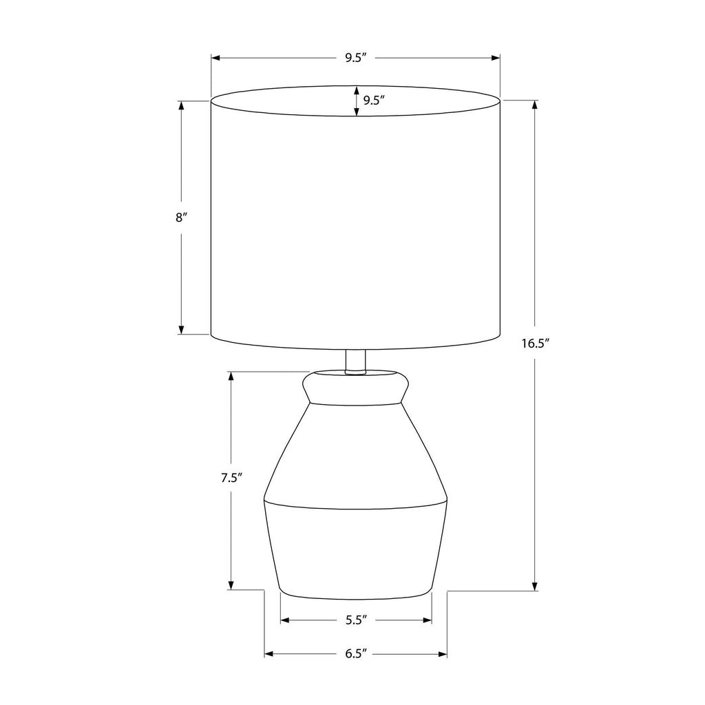 • Assembled dimensions: 9.5 in. L x 9.5 in. W x 16.5 in. H; base: 6.5 in. L x 6.5 in. W x 7.5 in. H; shade: 9.5 in. L x 9.5 in. W x 8 in. H