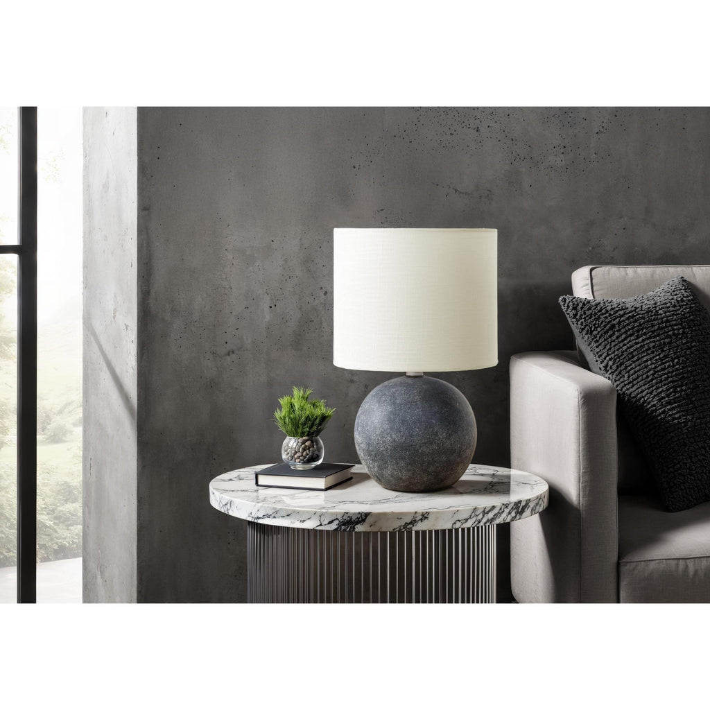 • This 16"h table lamp features a sleek grey concrete base paired with a soft ivory fabric shade, making it a stylish and fashionable addition to any contemporary living room, bedroom, or office decor.