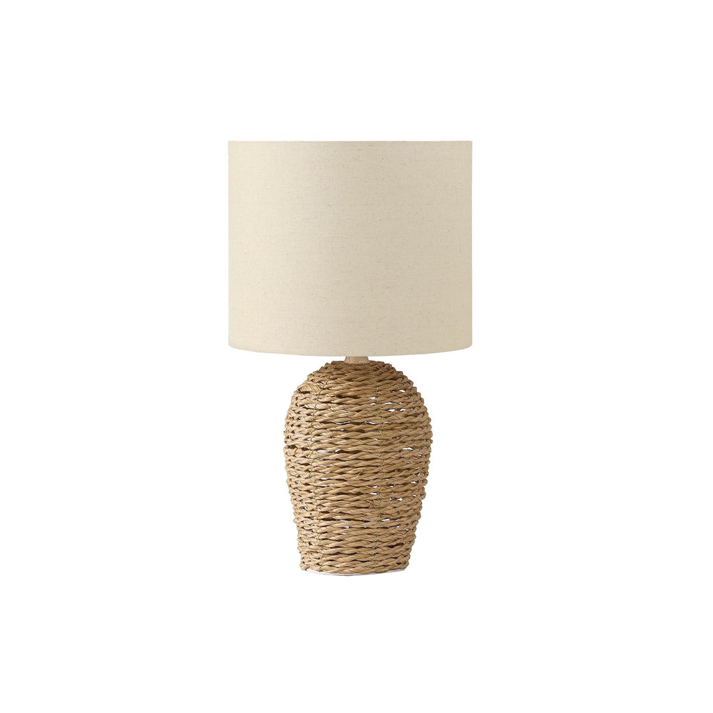 • Refresh your home with this stylish 17"h table lamp featuring a natural rattan base and a chic beige fabric shade, perfect for creating a warm and inviting ambiance in your living room, bedroom, or home office.