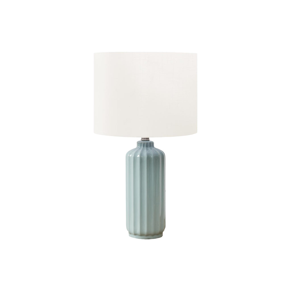 • This stylish 23"h table lamp features a chic, ribbed glossy green ceramic base paired with a sophisticated ivory fabric shade, making it the perfect accent piece to elevate any decor style.