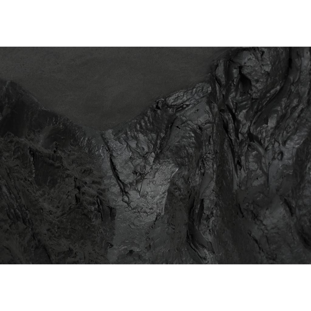 • A modern 25" accent table in a chic black finish imitating a natural rock design, seamlessly complements any space to serve as a unique end table in your living room, a side table on your patio, or as a nightstand in your bedroom
