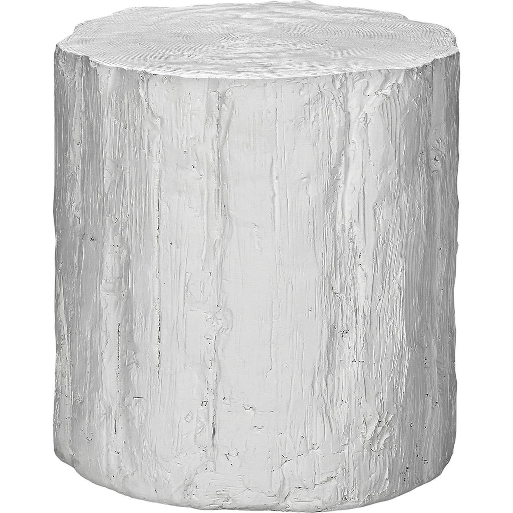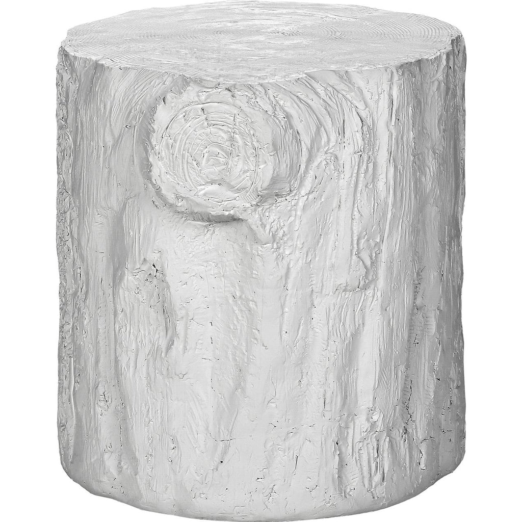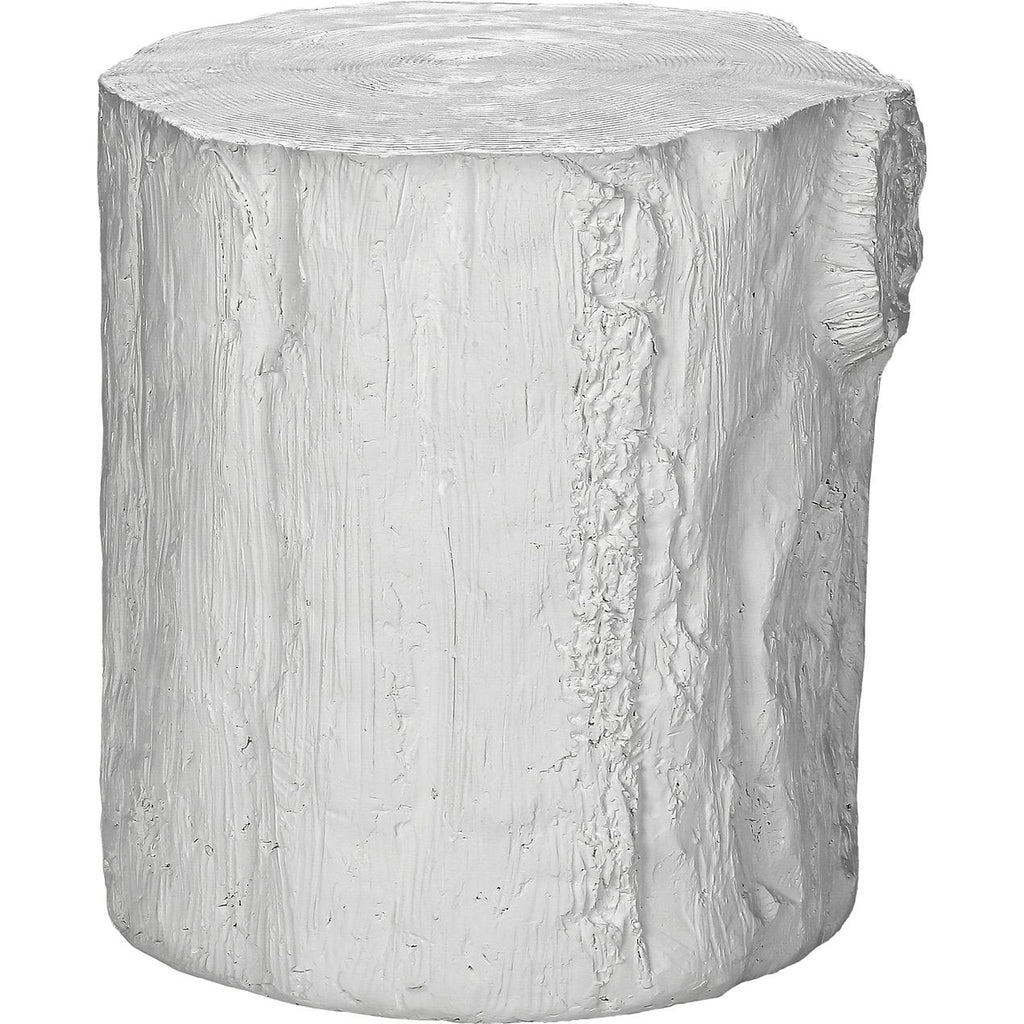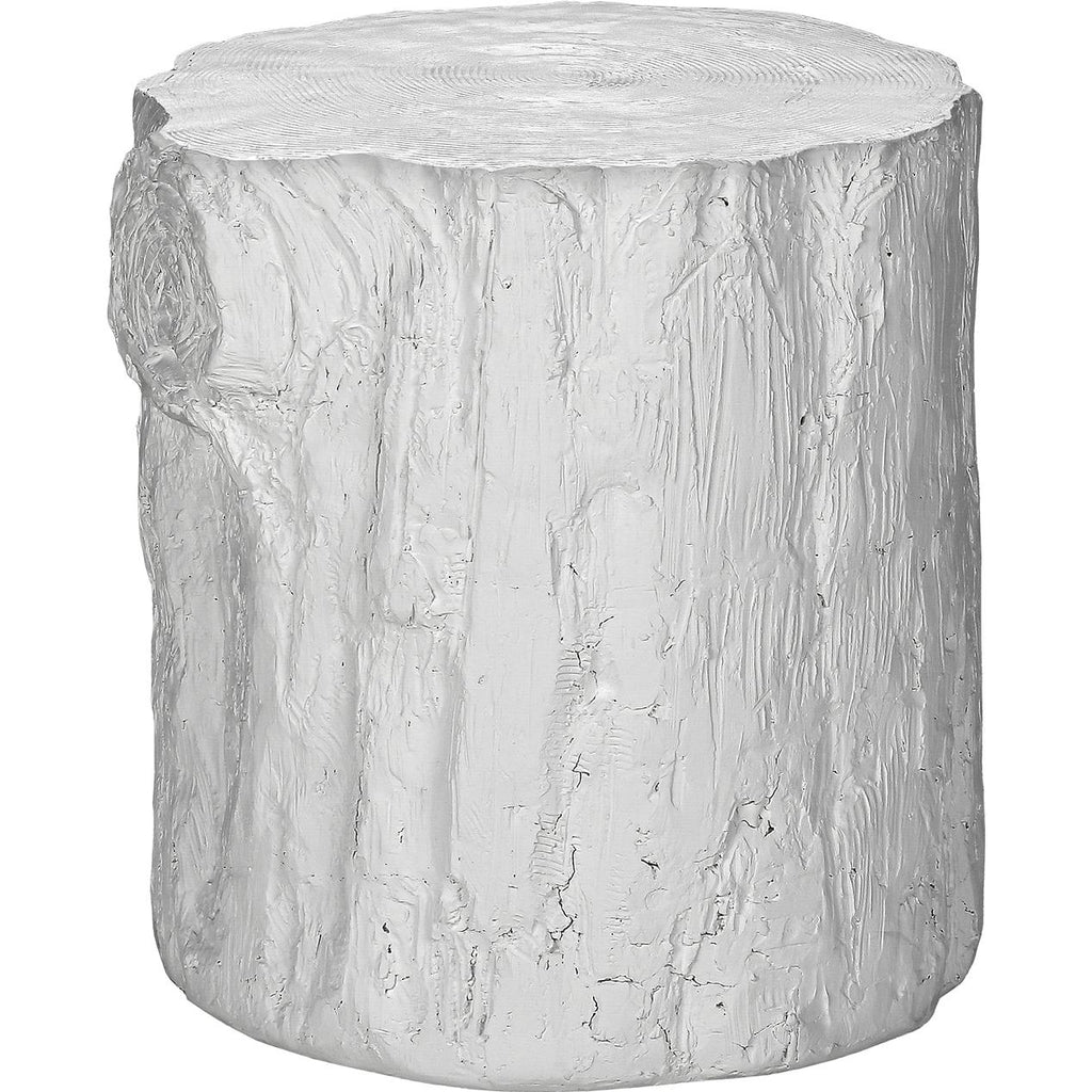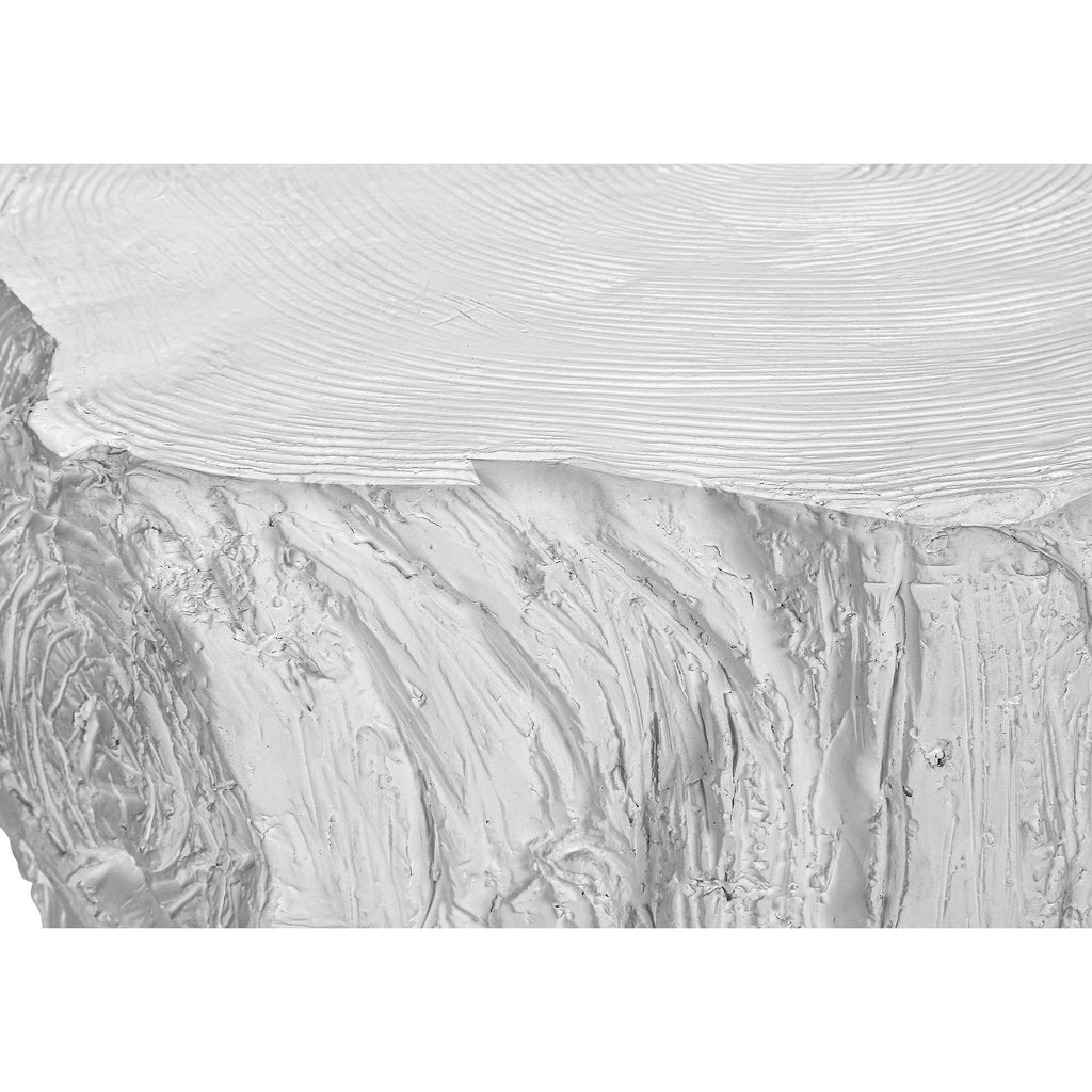 • Add a unique element to your living space with this 25"h round, white accent table, expertly crafted in a stunning tree stump design that complements any indoor or outdoor contemporary setting