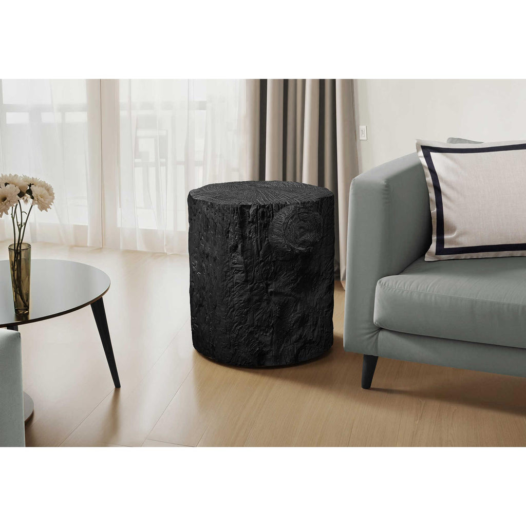 • Add a unique element to your living space with our 25"h round, black accent table, expertly crafted in a stunning tree stump design that complements any indoor or outdoor contemporary setting