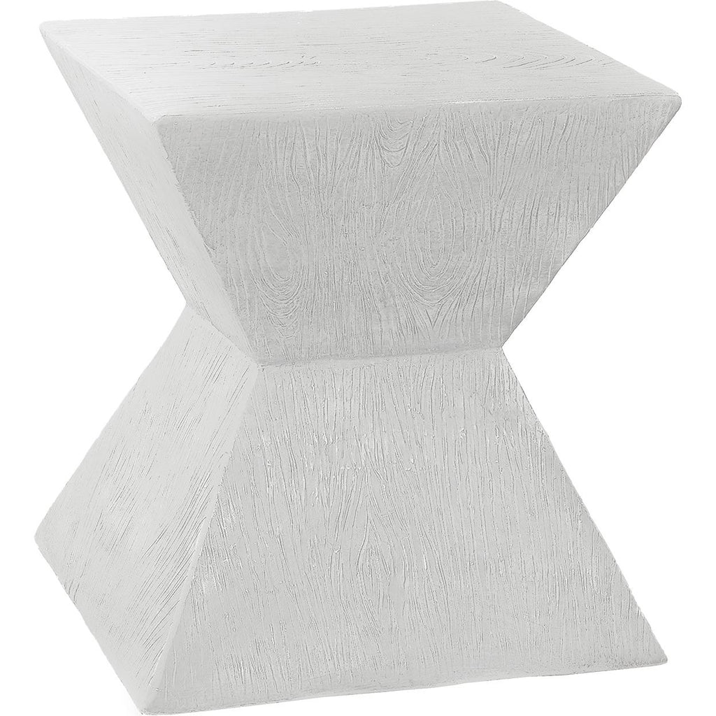 • This 25"H white accent table boasts a contemporary design with a wood grain pattern that seamlessly transitions between roles as a side table for your living room, an end table on your patio, or a chic nightstand in your bedroom