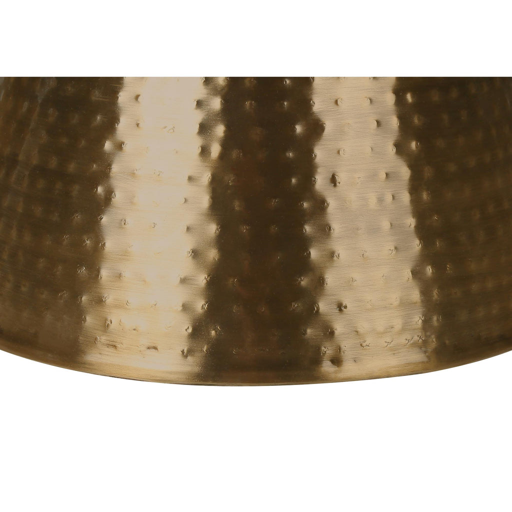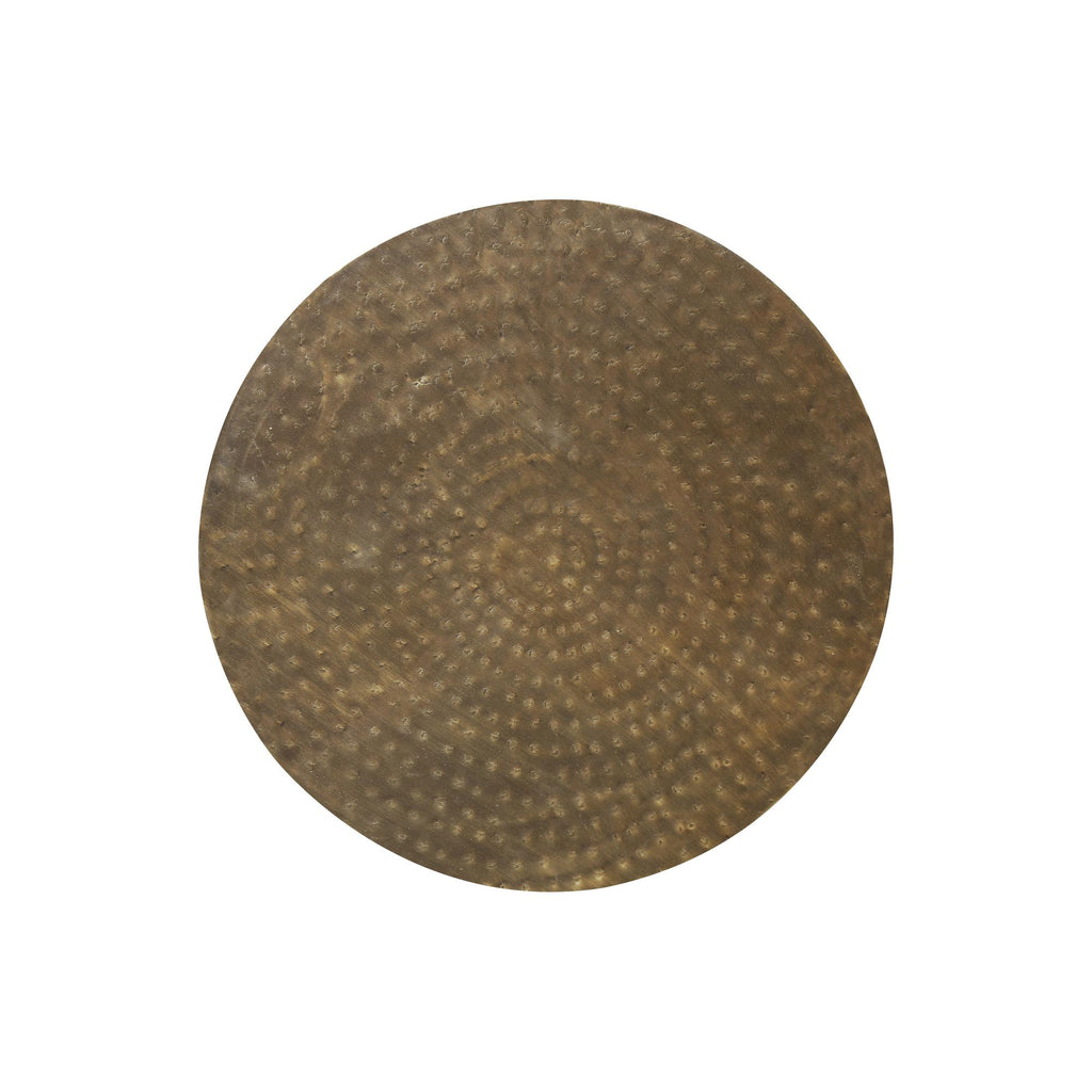 • This hand-crafted, 22" high accent table with a hammered design on all sides, brings a bold and glamourous presence to a room with its sophisticated copper metal finish in a modern hour glass shape