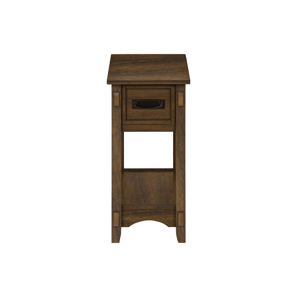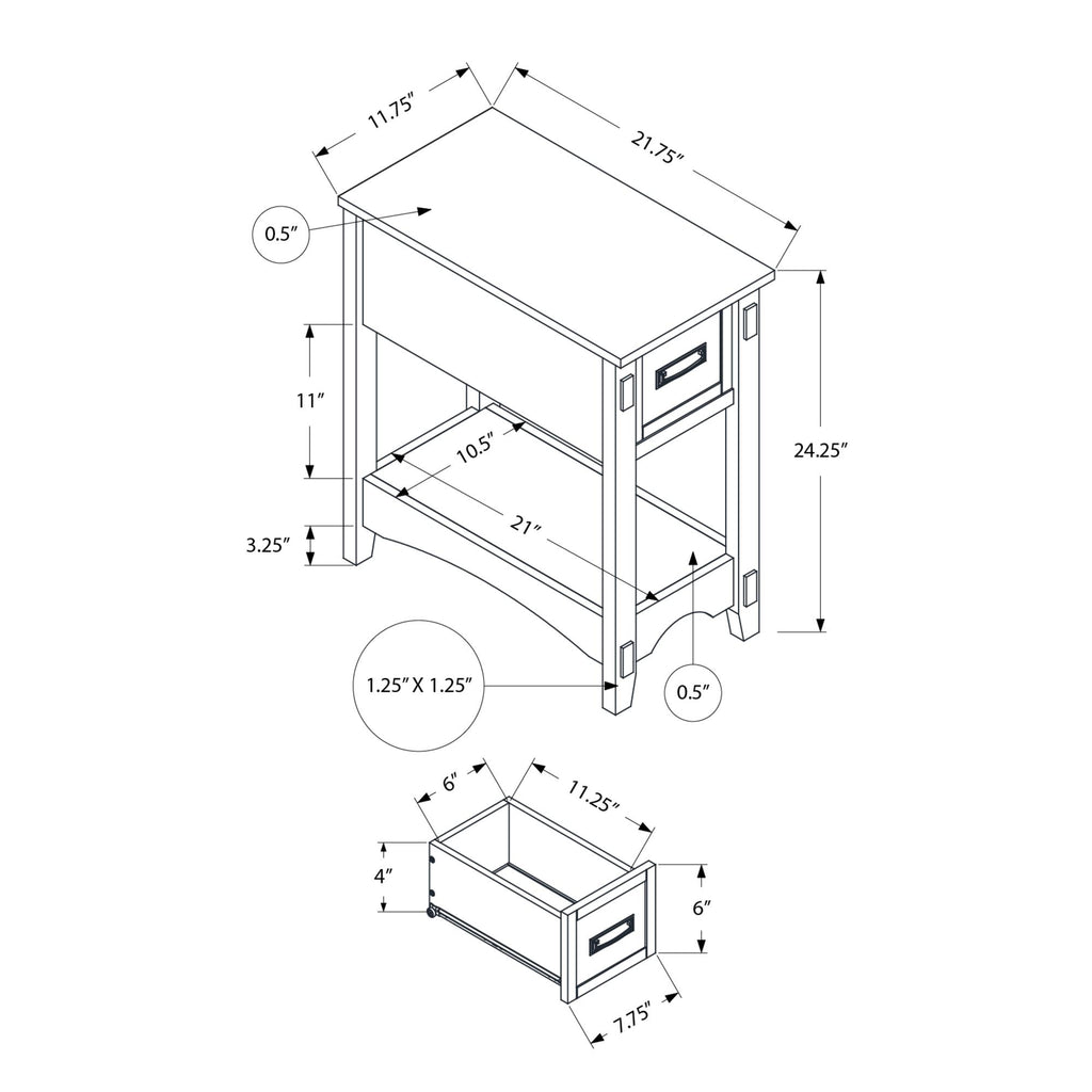• Features a storage drawer with a black metal pull handle and a bottom shelf for extra organization, all in a space saving design perfect for small rooms
