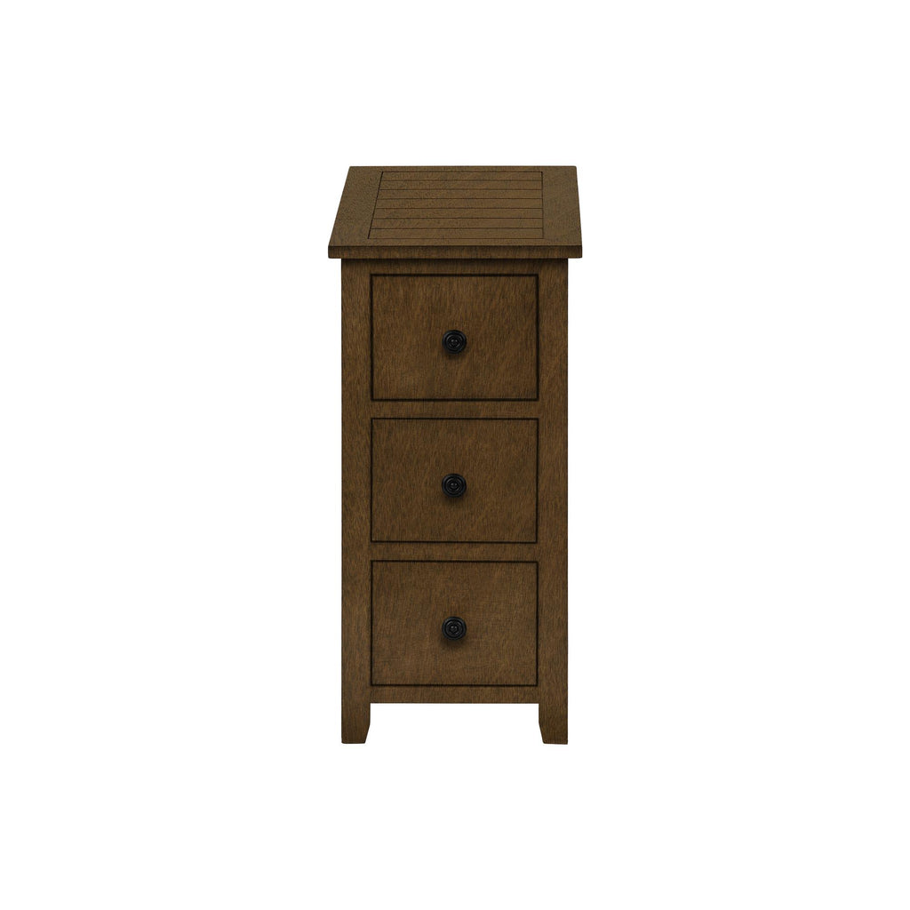 • With a narrow profile, this table offers ample storage with 3 convenient drawers on metal glides elegantly complimented with black metal knobs to stow away your essentials within reach
