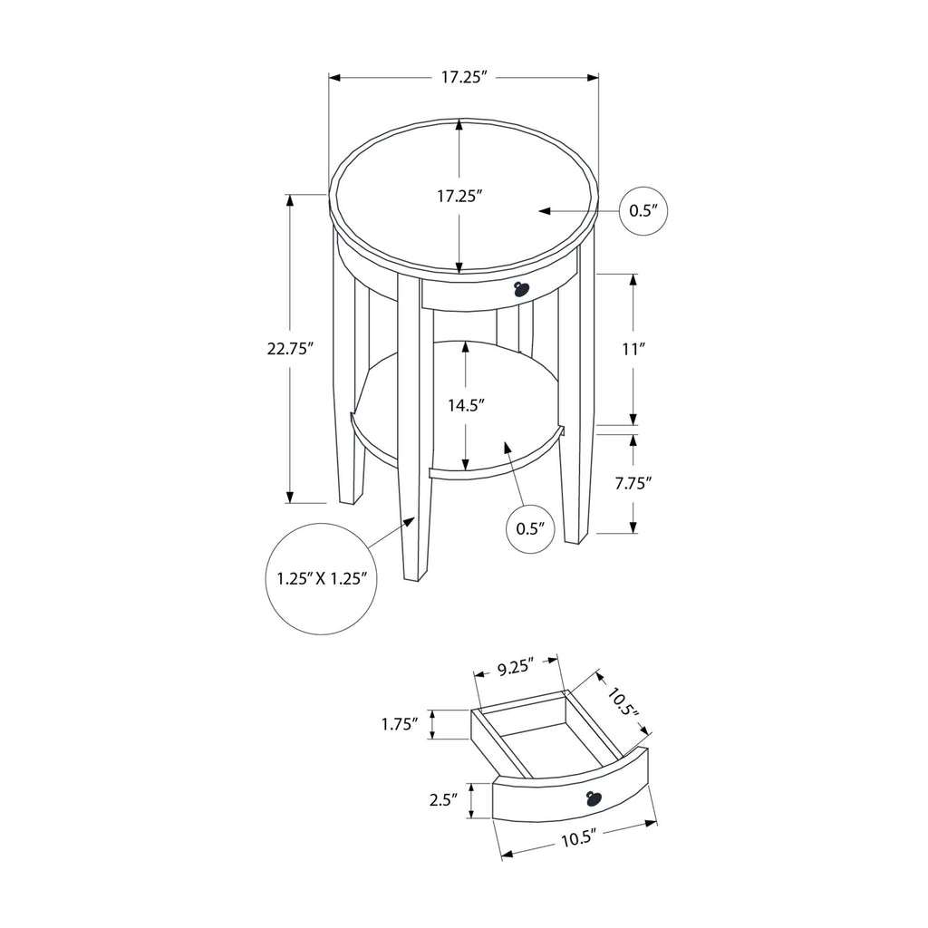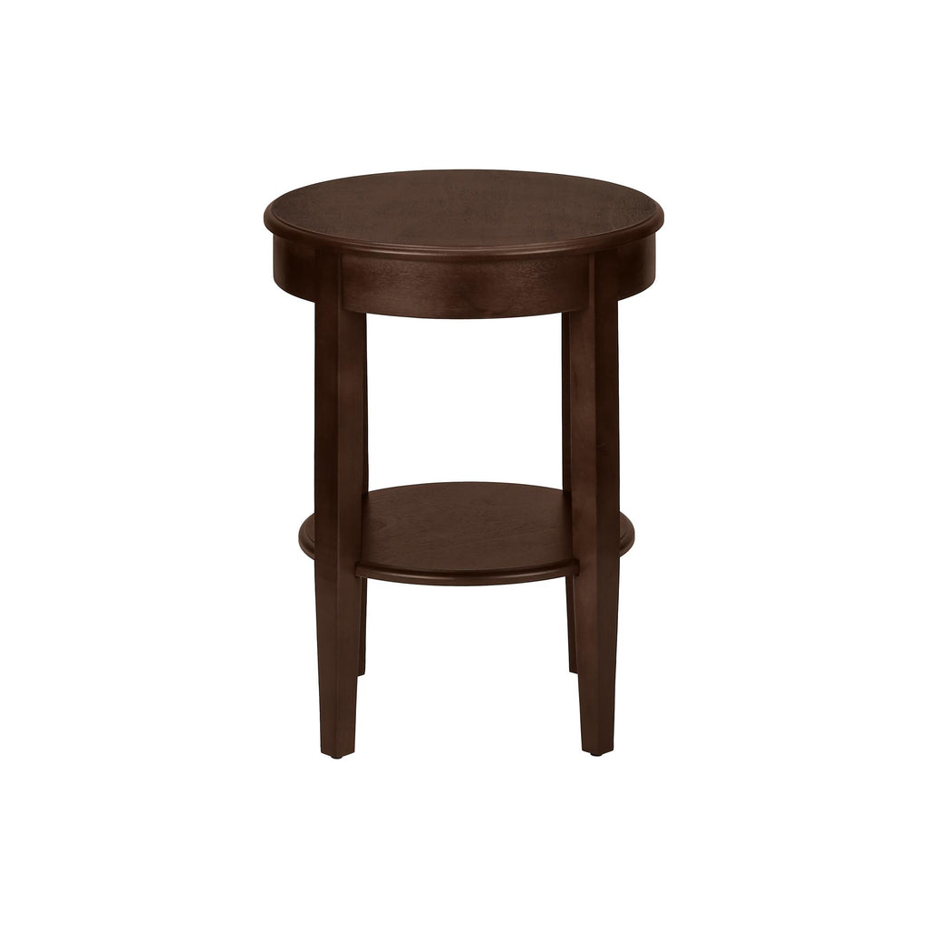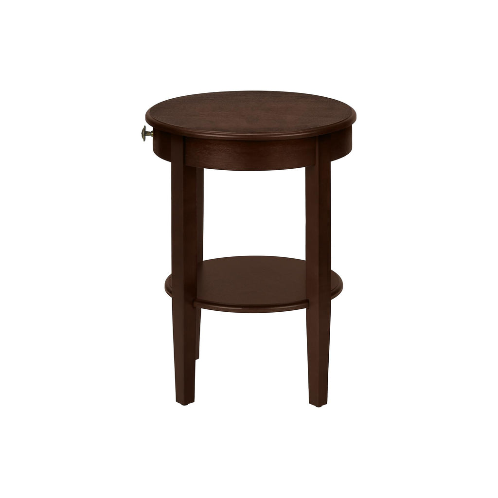 • This 23 inch high espresso brown veneer accent table, with a space saving design is versatile as an end or side table in a living room or as a stylish nightstand in a bedroom