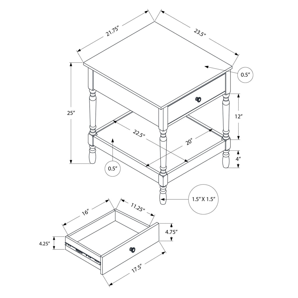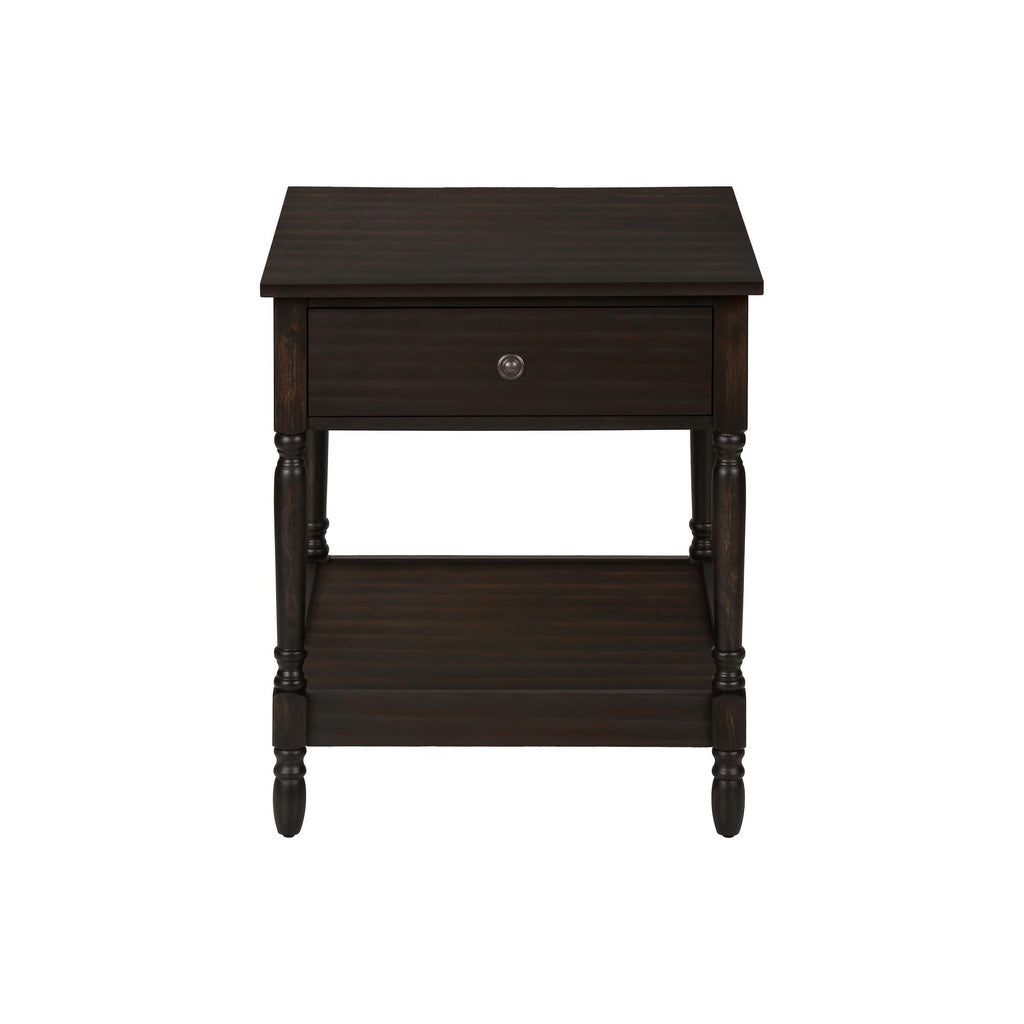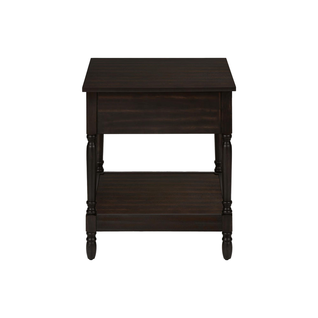 • This traditionally designed, 25 inch high square shaped accent table with a dark walnut brown veneer finish is perfect to add as an end or side table in your living room or as a nightstand in your bedroom