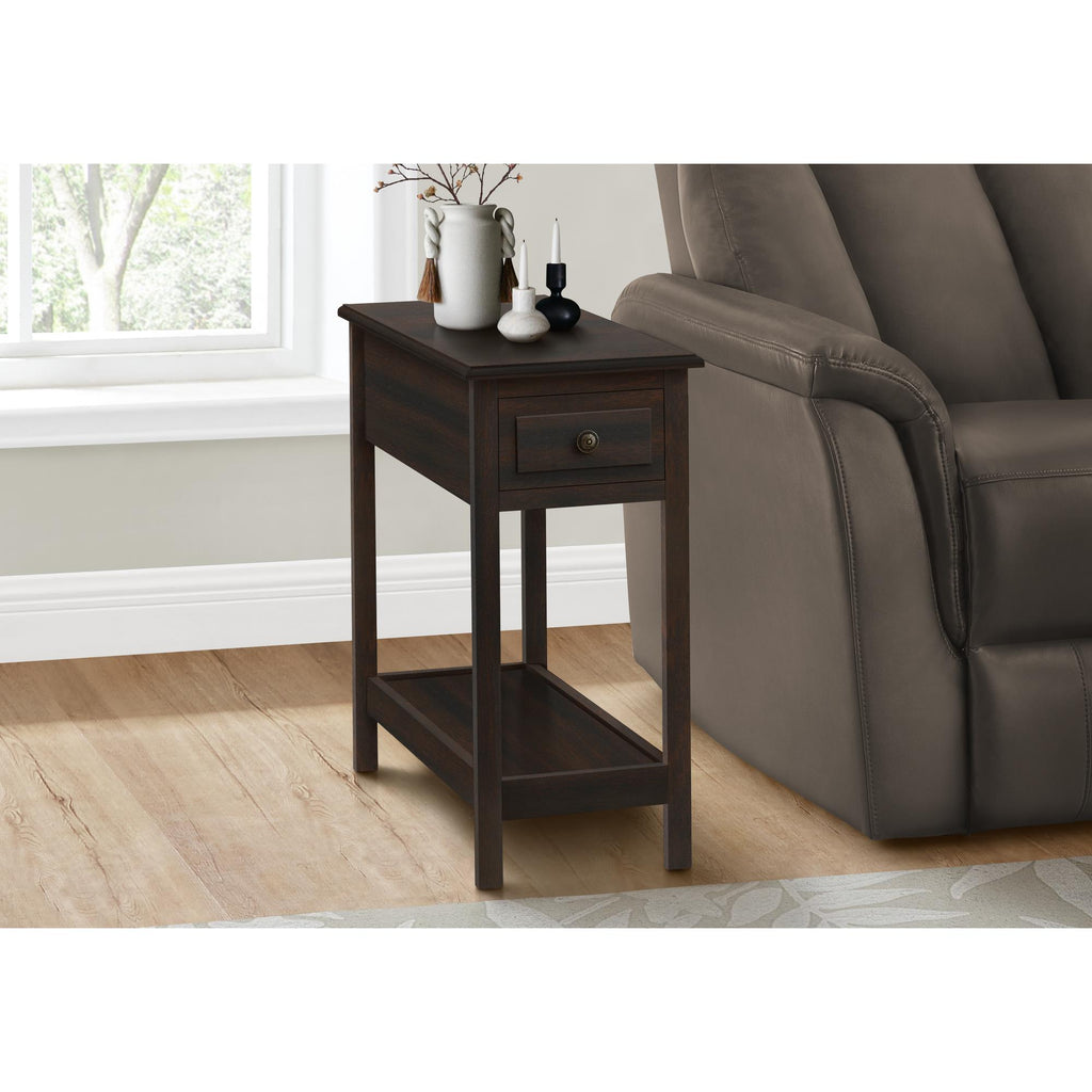 • A practical and space saving 2 tier accent table with a rich walnut brown veneer finish, versatile as an end or side table in a living room, or add a small lamp and bring it into the bedroom as a stylish nightstand