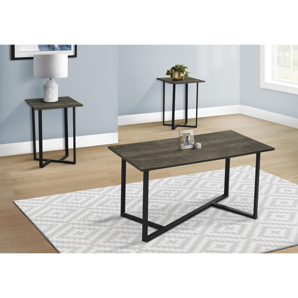 • This stylish and chic 3-piece table set featuring a dark bronze laminate finish and sleek black metal base, gives a contemporary boost to your living room decor