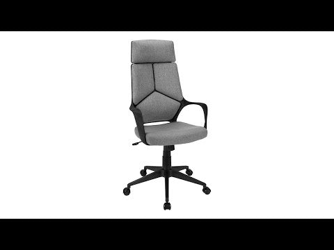 • High-back executive office chair with fixed armrests in black and soft, polyester fabric in dark grey