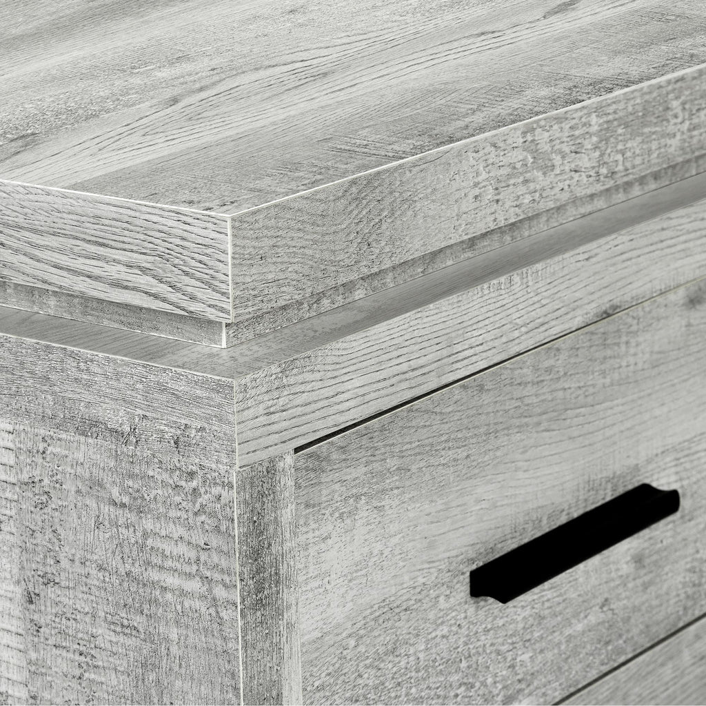 • Contemporary design in a trendy grey reclaimed wood-look with black accents