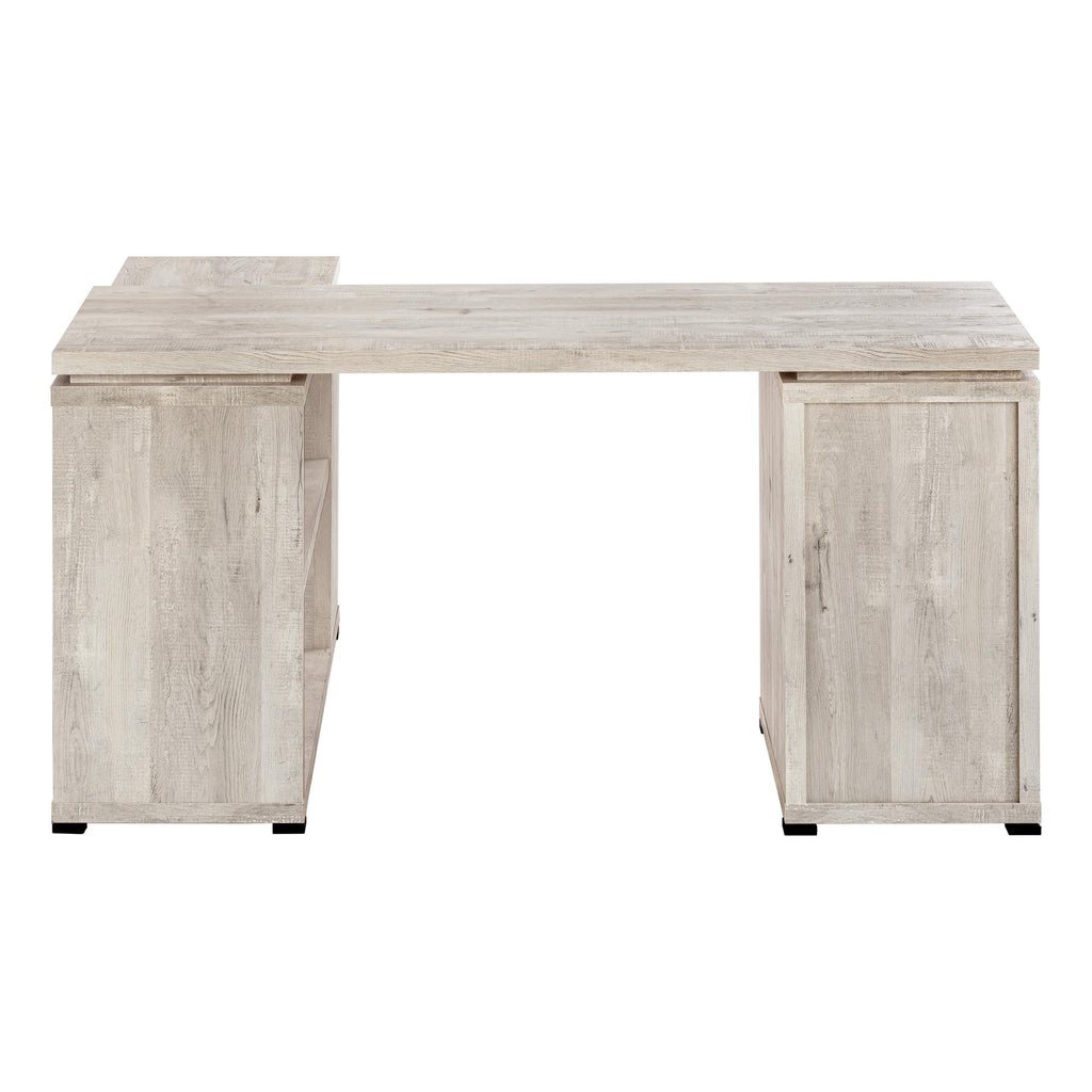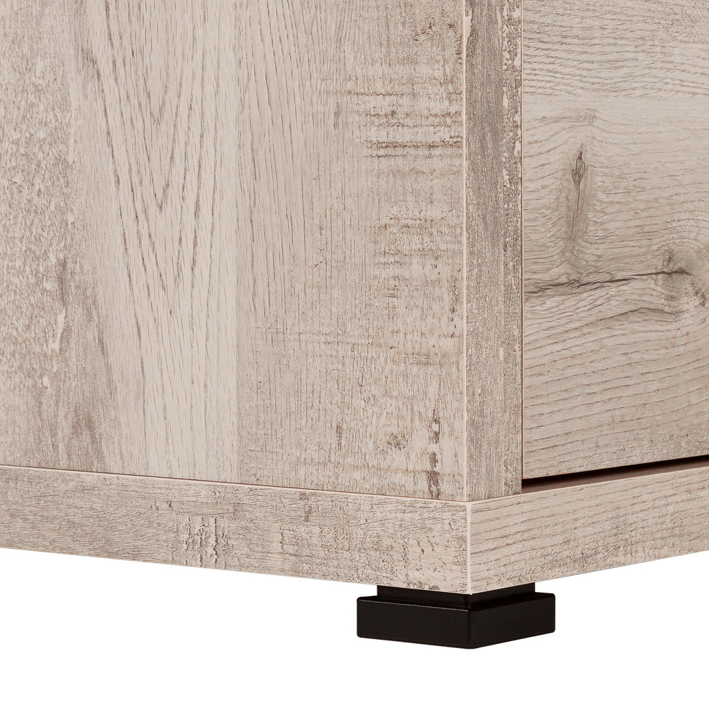 • Contemporary design in a trendy taupe reclaimed wood-look with black accents