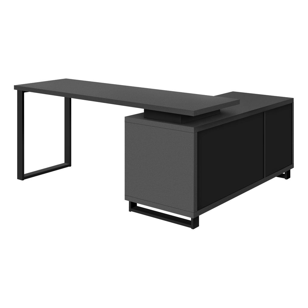 • L-Shaped computer desk with storage featuring thick-panel construction in a modern grey finish