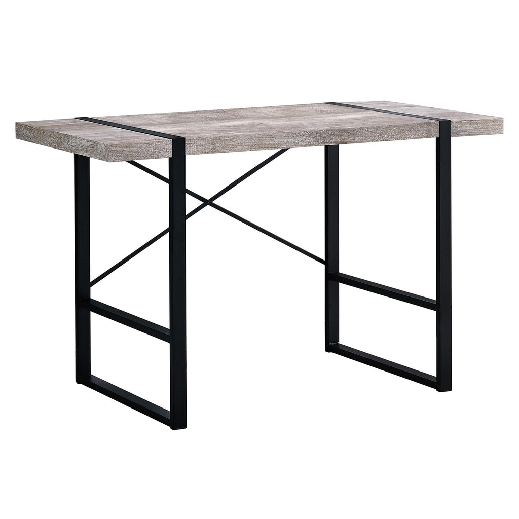 • Bold contemporary design balanced with a thick desk-top in a warm taupe reclaimed wood-look finish