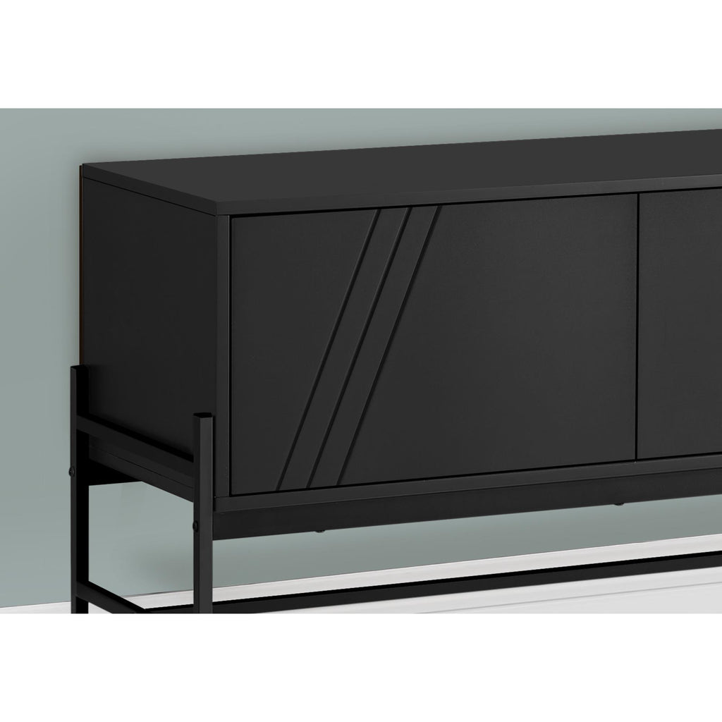 • This fashionably stylish 60 inch contemporary tv stand is solidly constructed with black laminate and black metal for a modern statement in a living room, bedroom, or office