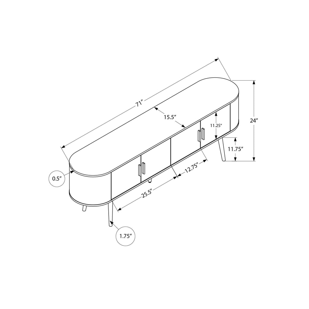 • Easy to assemble with illustrated instructions and hardware included, this tv console boasts curved sides and sleek handles in silver for a mid-century flair, bringing fashionable style to any contemporary home