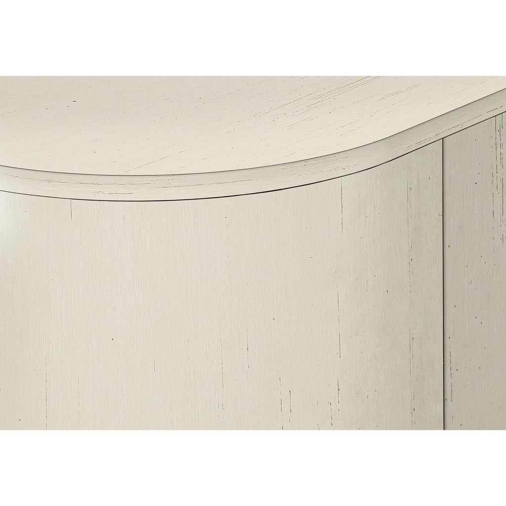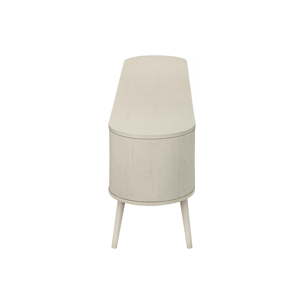 • Durably designed with antique white solid wood legs, this console offers spacious storage cabinets and 2 hidden cable management holes for organizing your media entertainment center