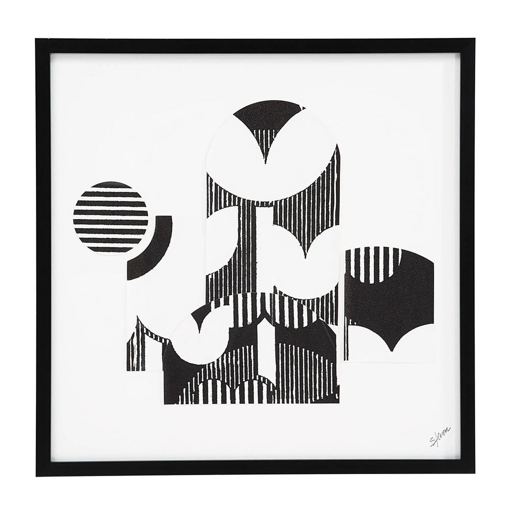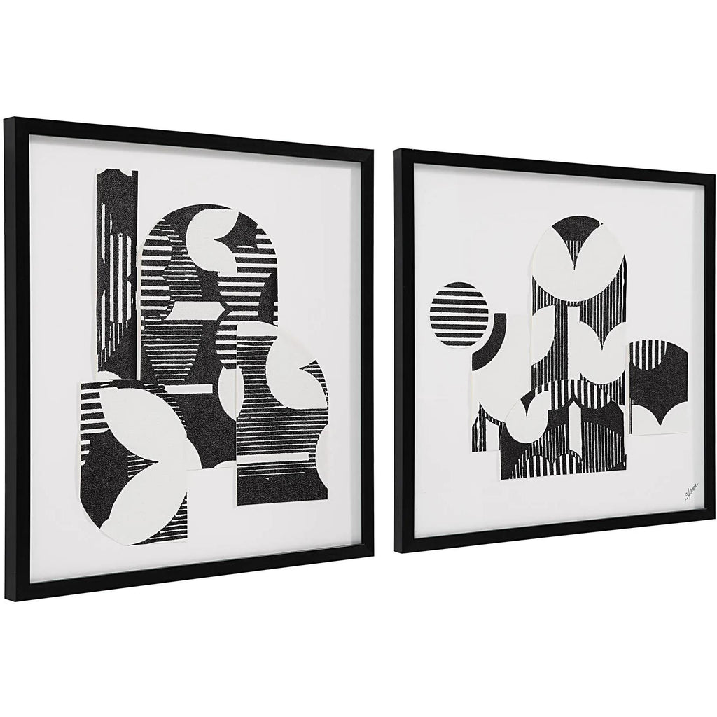 Set of 2 - Wall décor - Printed - Rag paper - Collage - Black frame - Under glass - 2-way hanging