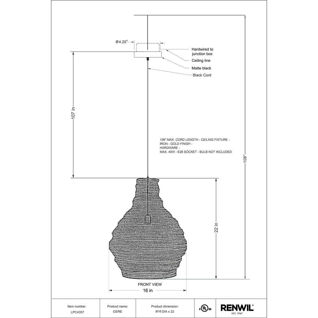 • 108" Max. Cord Length