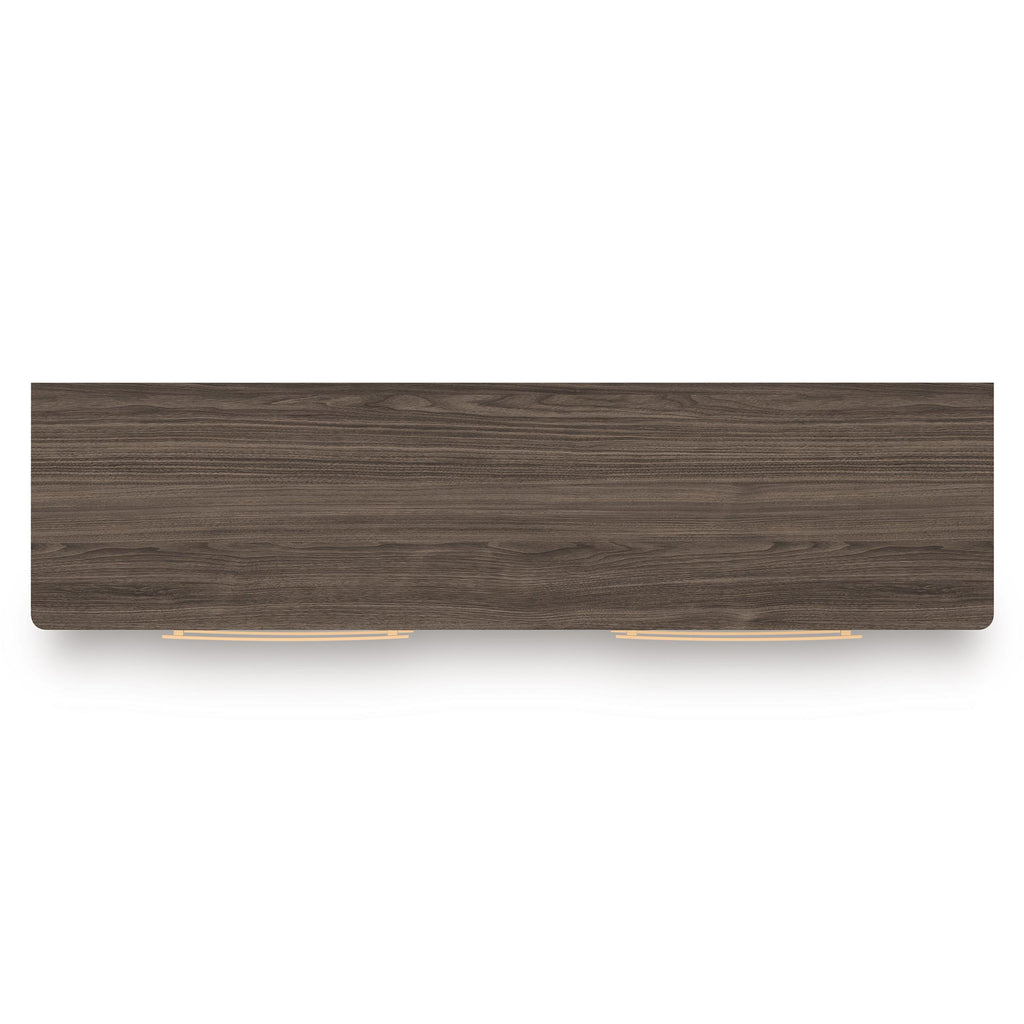 • Two-tone finish (dark brown finish over replicated walnut grain; matte white finish)