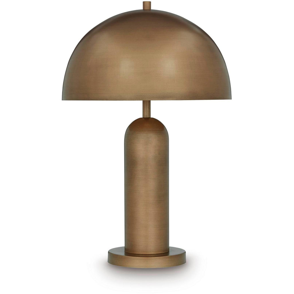 Dome sweet dome. Shine a light on your love of all things contemporary with this table lamp. Its sleek goldtone... Dome sweet dome. Shine a light on your love of all things contemporary with this table lamp. Its sleek goldtone finish and bold, columnar design add a brilliantly modern touch to any room. A dome-shaped shade provides a warm and focused light, perfect for reading or creating a cozy ambiance. The matching floor lamp (sold separately) is also a bright idea. View more