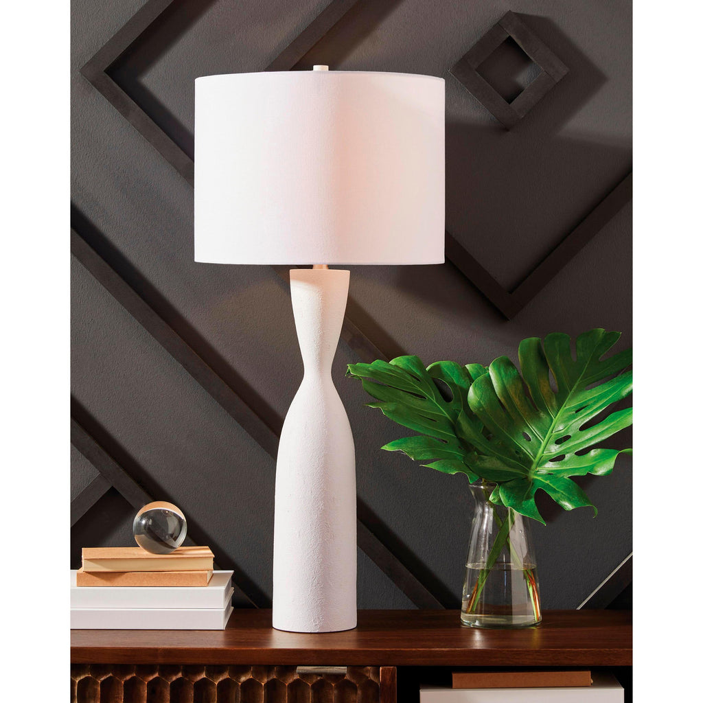 This table lamp is a forward-thinking take on monochromatic design. An elongated base with a cinched profile gives this artistic... This table lamp is a forward-thinking take on monochromatic design. An elongated base with a cinched profile gives this artistic piece the illusion of grander height. And its crisp white finish pairs well with a variety of contemporary color palettes. View more