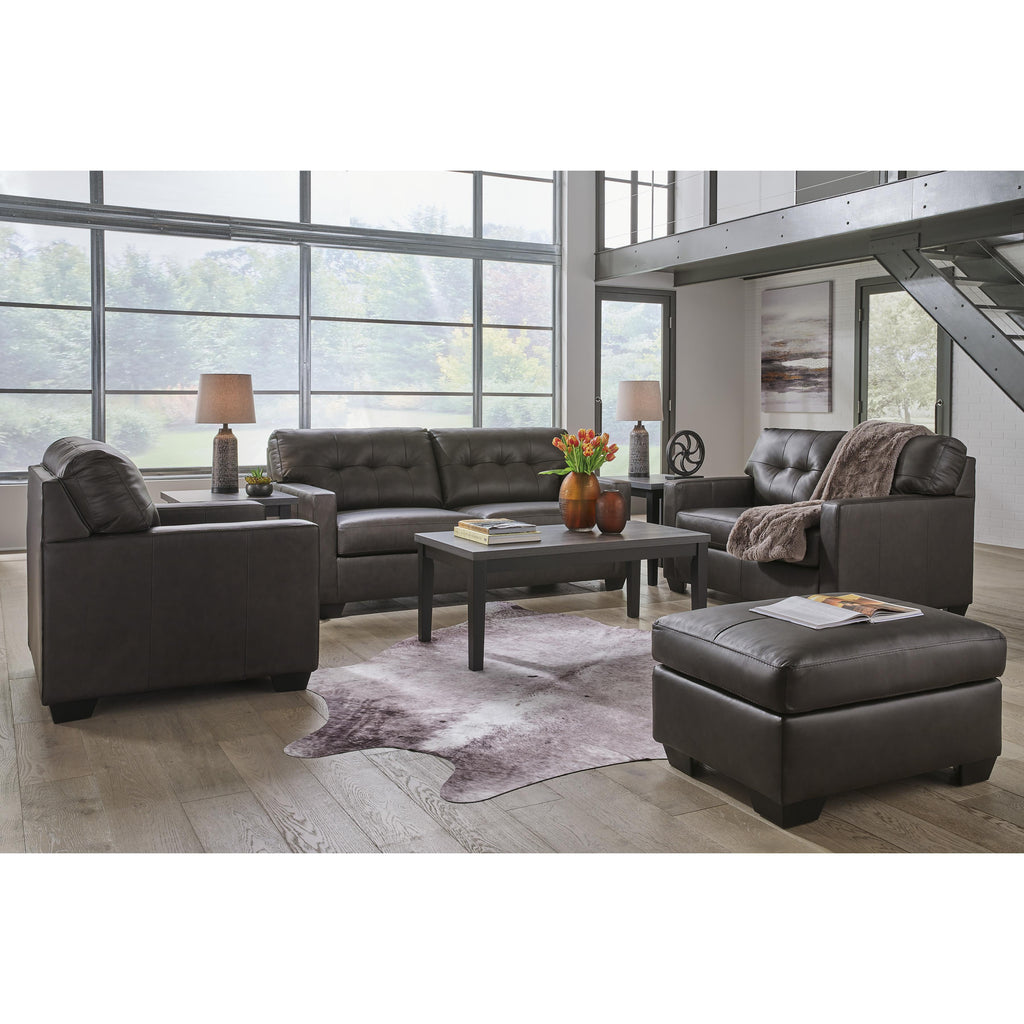 • 100% top grain leather covers the cushion top; skillfully matched faux leather covers the remaining areas