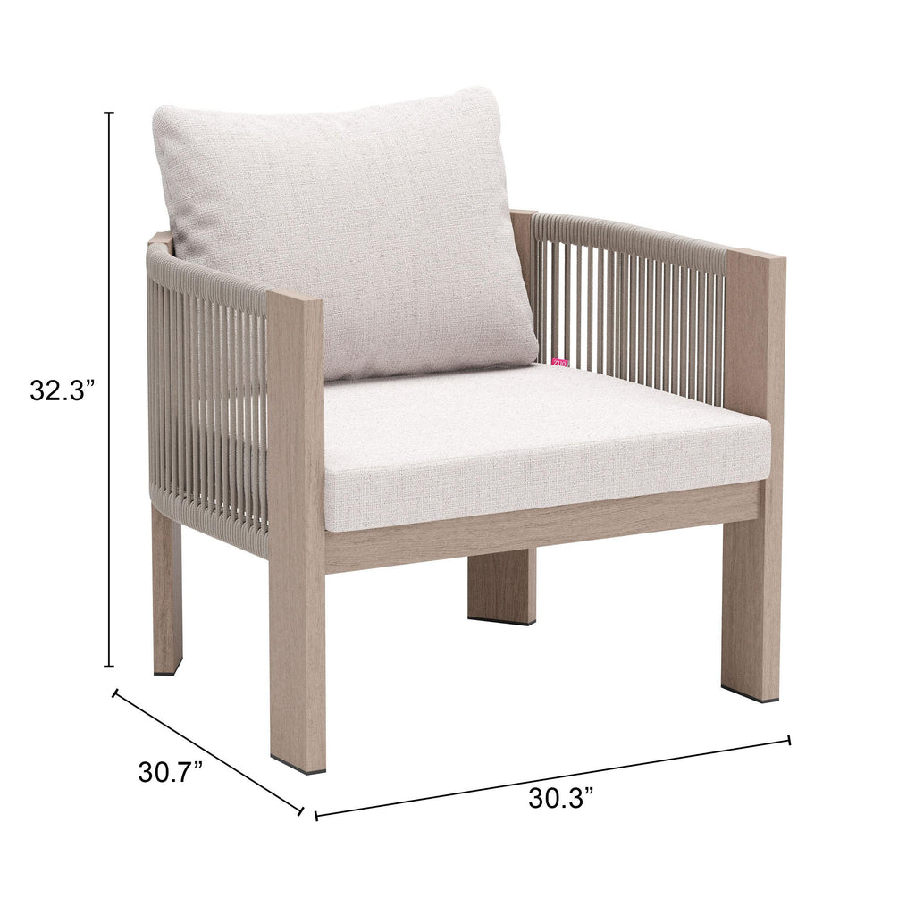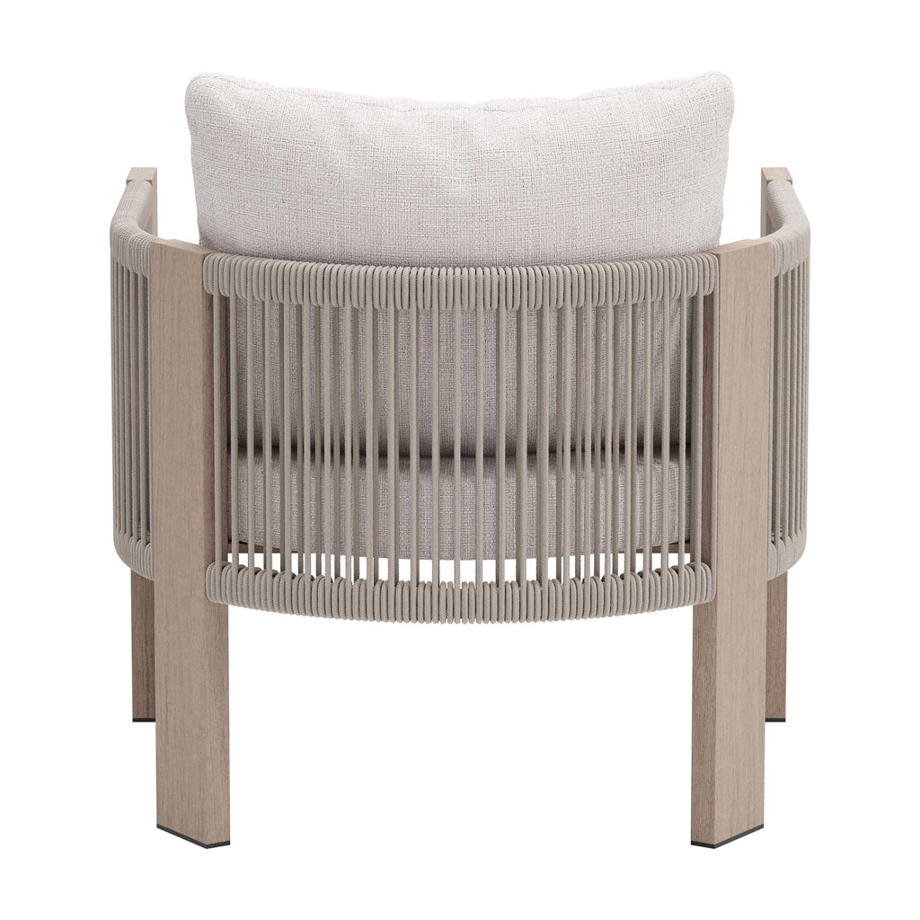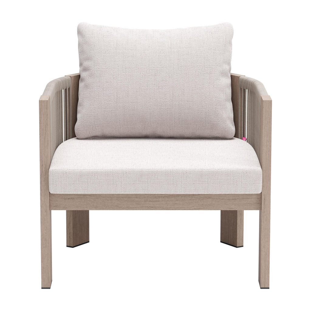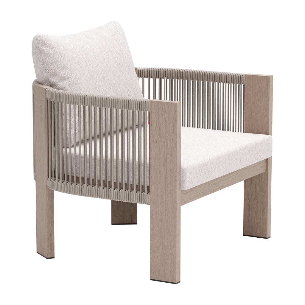 • Product Finishes + Materials: Outdoor Fabric 100% Olefin, Faux Wood Aluminum, Outdoor Fabric 100% Polyester, Powder Coated Aluminum